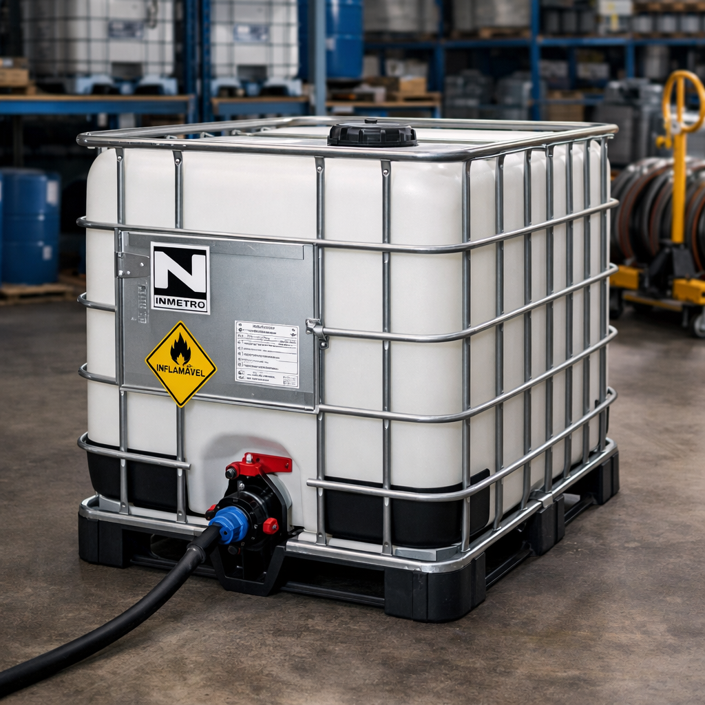 👉 Um único IBC equivale aproximadamente a 5 tambores de 200 litros, otimizando espaço e logística.